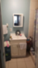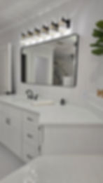 A complete bathroom remodel, transforming the space with a modern design. The update includes a sleek new vanity, stylish tile with custom accents, refreshed flooring, fresh paint, and upgraded fixtures—completely reinventing the bathroom.
