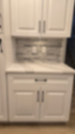 This kitchen underwent a complete transformation, featuring a raised floor to eliminate the stairs, providing seamless entry. It includes a stylish wine rack, a charming farmhouse-style sink, spacious new cabinets, upgraded flooring, and a fresh coat of paint throughout.